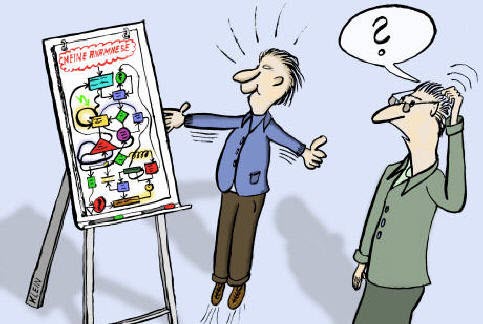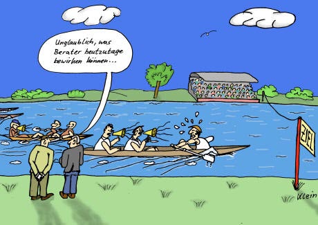 Aufgabe des BeratersAutor: Michael Hoberg - Cartoon: Rupert KleinDer Berater unterstützt seinen Kunden bei der Erschließung ihrer RessourcenIn der Regel erwartet der Klient vom Berater/Coach die Lösung eines Problems, sei dies nun beruflicher, privater, aktueller oder langfristiger Natur. Dabei steht die aktuelle Fragestellung oder der aktuelle Anlass im Fokus der Beratung. Längerfristige Begleitung ist zum Beispiel im Rahmen eines Opportunity Coachings denkbar.Damit ist der Berater professioneller Begleiter sozialer Veränderungsprozesse. Er erarbeitet gemeinsam mit dem Klienten individuelle Lösungsmöglichkeiten, über deren Umsetzung dieser nach eigenem freien Willen entscheidet.
