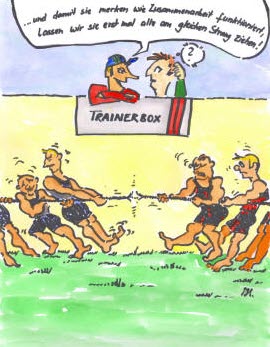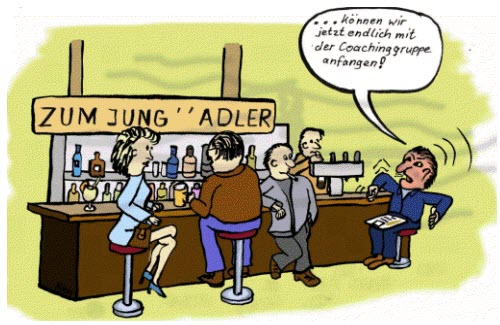 Coachingformen(01/2006)Autoren: Michael Hoberg/ Ulrike Blum-HobergCartoon: Rupert Klein (01/2006)Die Art der Beratung sollte dem Problem und dem Klienten angemessen seinEin fundiertes, professionelles Coaching basiert wie auch Beratung und Therapie auf einem wissenschaftlich begründeten psychologischen Hintergrund z.B. Tiefenpsychologie, humanistische Psychologien, etc. In seiner Arbeit kann der Coach unabhängig vom wissenschaftlichen Hintergrund konfrontativ, unterstützend (supportiv), defizitorientiert oder ressourcenorientiert vorgehen, wobei er entsprechende Interventionen anwenden wird.In der Regel ist Coaching fokal angelegt, d.h. auf eine spezielle Fragestellung des Klienten ausgerichtet. Ist diese Fragestellung, also der Coaching-Auftrag, abgearbeitet, ist das Coaching beendet. Darüber hinaus ist auch Prozesscoaching üblich, bei dem ein Klient über einen längeren Zeitraum bei der Bewältigung seines Lebens, seiner beruflichen Laufbahn oder in einer Krisensituation durch einen Coach begleitet wird. Prozesscoaching wird auch im Rahmen von Firmenmaßnahmen angewendet bei der Begleitung einzelner Mitarbeiter, ganzer Abteilungen oder auch ganzer Firmen bei Veränderungsprozessen.Vom Setting her kennen wir im Coaching unterschiedliche Formen: das Einzelcoaching in der vier-Augen-Situation zwischen Klient und Coach, das Paar-Coaching, bei dem der Coach mit beiden Beteiligten gemeinschaftlich deren gemeinsame Fragestellung bearbeitet, das Guppencoaching, in dem mehrere Klienten zusammen mit dem Coach bei regelmäßigen Gruppentreffen anstehende Fragestellungen und Probleme der Gruppenmitglieder bearbeiten, wobei auch die Gruppenteilnehmer Gelegenheit haben, sich aktiv bei Themen anderer zu beteiligen.Neuerdings wird der Begriff „Coaching“ auf mehr und mehr Bereiche des täglichen Lebens ausgeweitet, so dass man neben dem Jugend- und Sportcoach (J+S Coach) auch den Gesundheitscoach, den Private Coach, den Coach für Life-balance etc. findet.